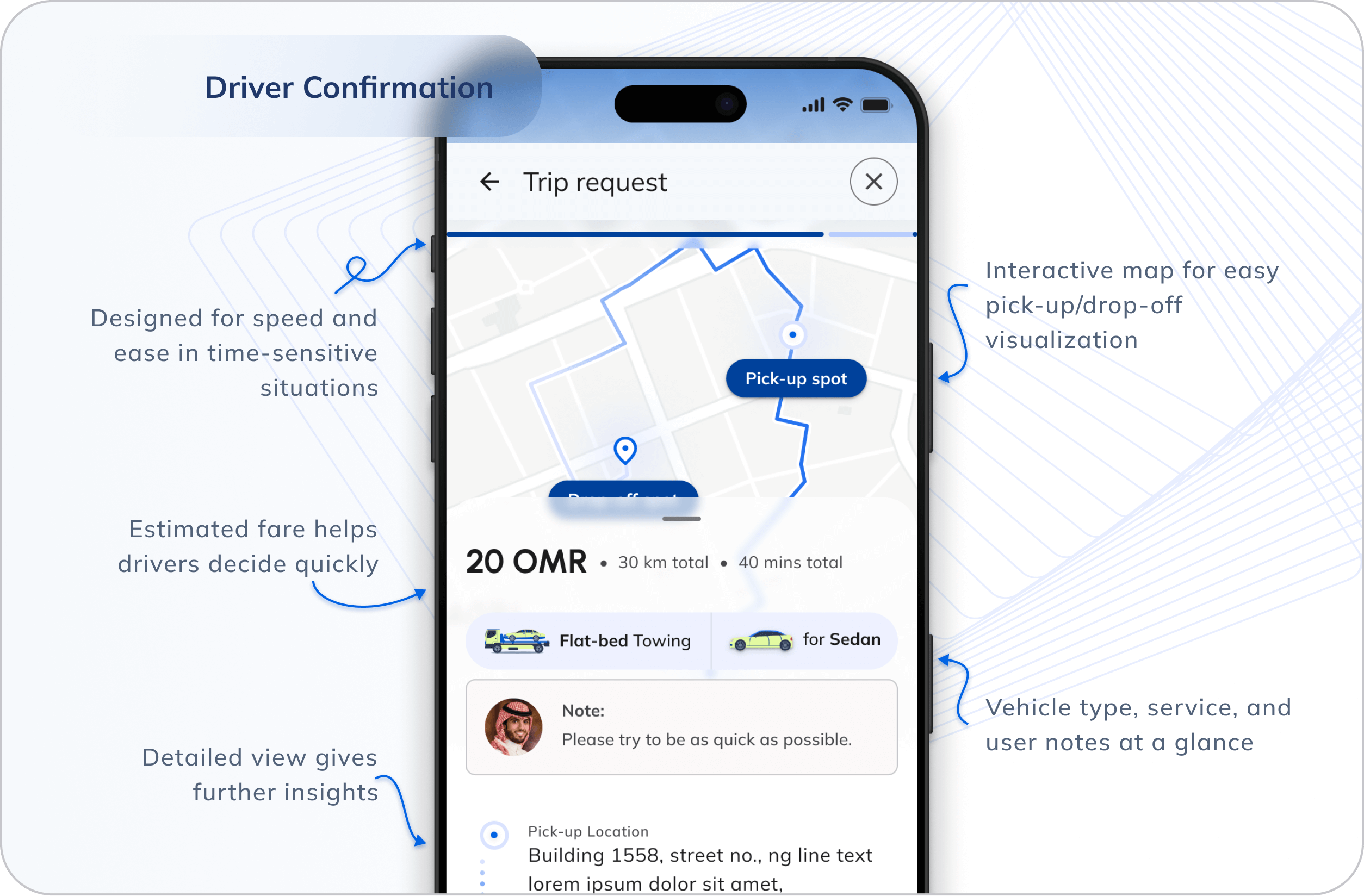 The client didn't have market research on tow truck drivers in Oman so i conducted thorough desk research and analyzed similar apps to create seamless flows