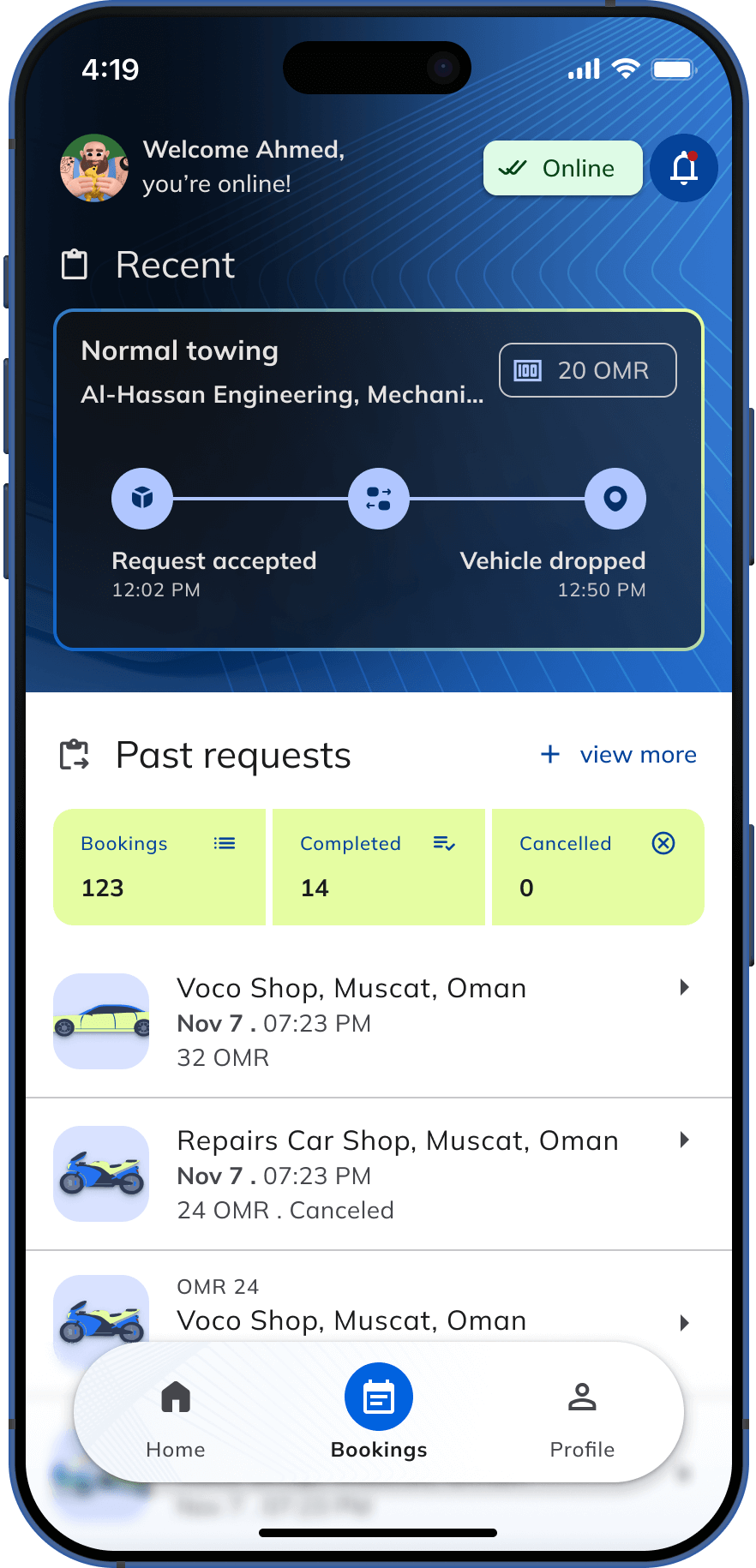 Drivers receive, accept, and manage bookings in real time, ensuring flexibility and efficiency in handling tow requests.